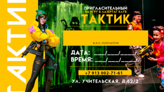 Лазертаг клуб "Тактик" (г.Новосибирск, ул. Учительская 62/2) — это отличное место для активного отдыха и командных игр. Клуб предлагает уникальную атмосферу, где игроки могут погрузиться в захватывающие сражения с использованием современного лазерного оборудования.